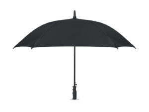 23-calowa, 3-częściowa parasolka z odwróconym mechanizmem, odporna na wiatr, wykonana z tkaniny pongee 190T RPET, z dopasowanym etui. Automatyczne otwieranie i zamykanie, całkowicie czarna rama, żebra