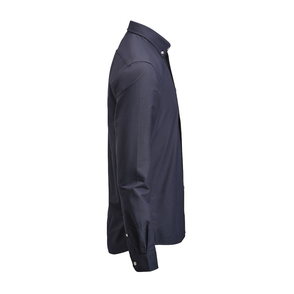 Koszula Oxford z kołnierzykiem zapinanym na guziki i kieszenią na piersi. Guziki w kolorze perłowym przyszyte białą nitką. Dostarczona w biodegradowalnej, kompostowalnej torbie.