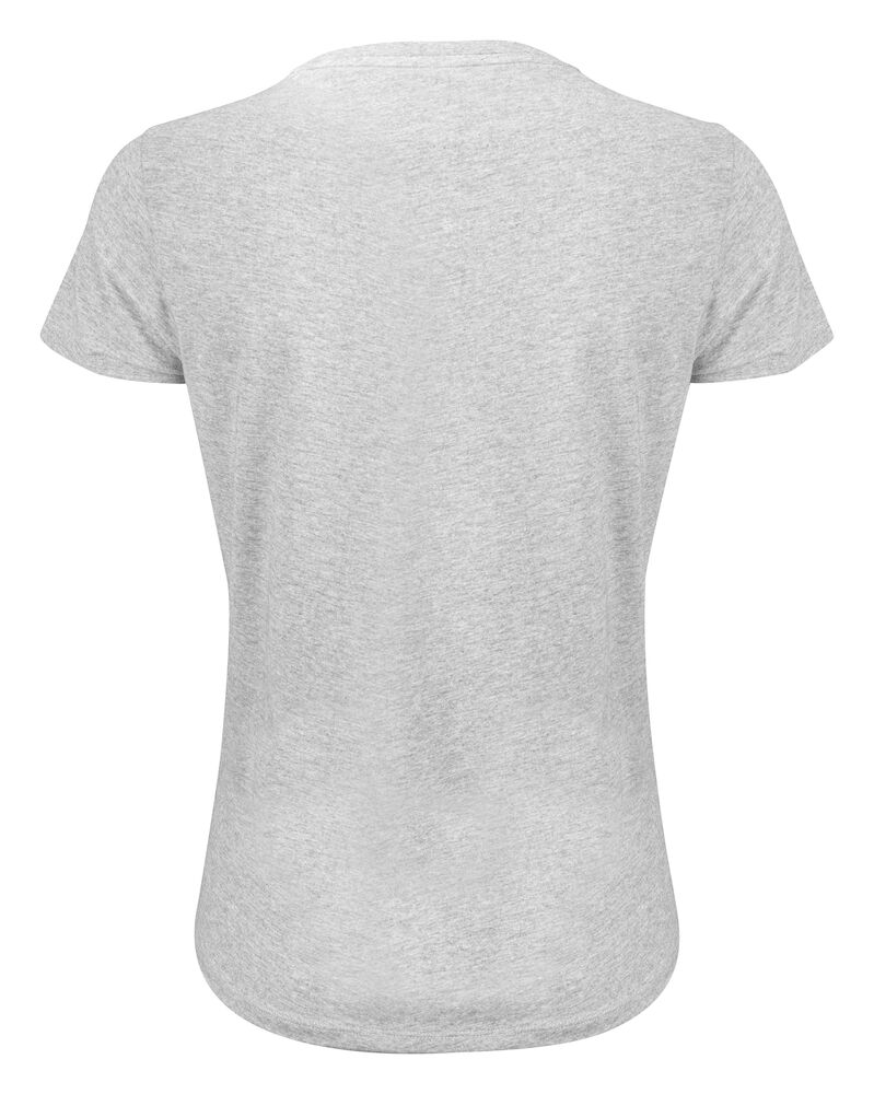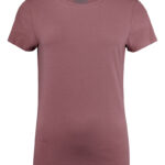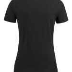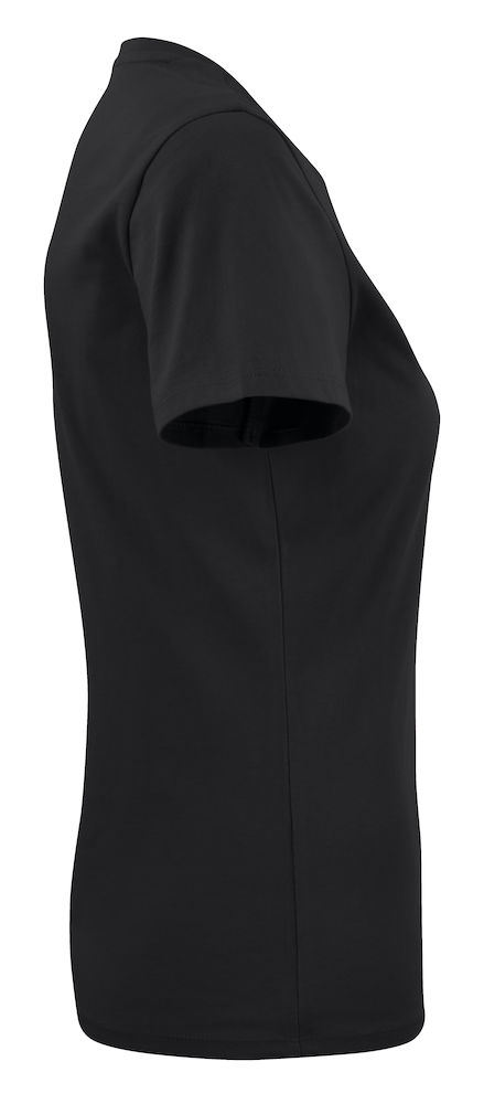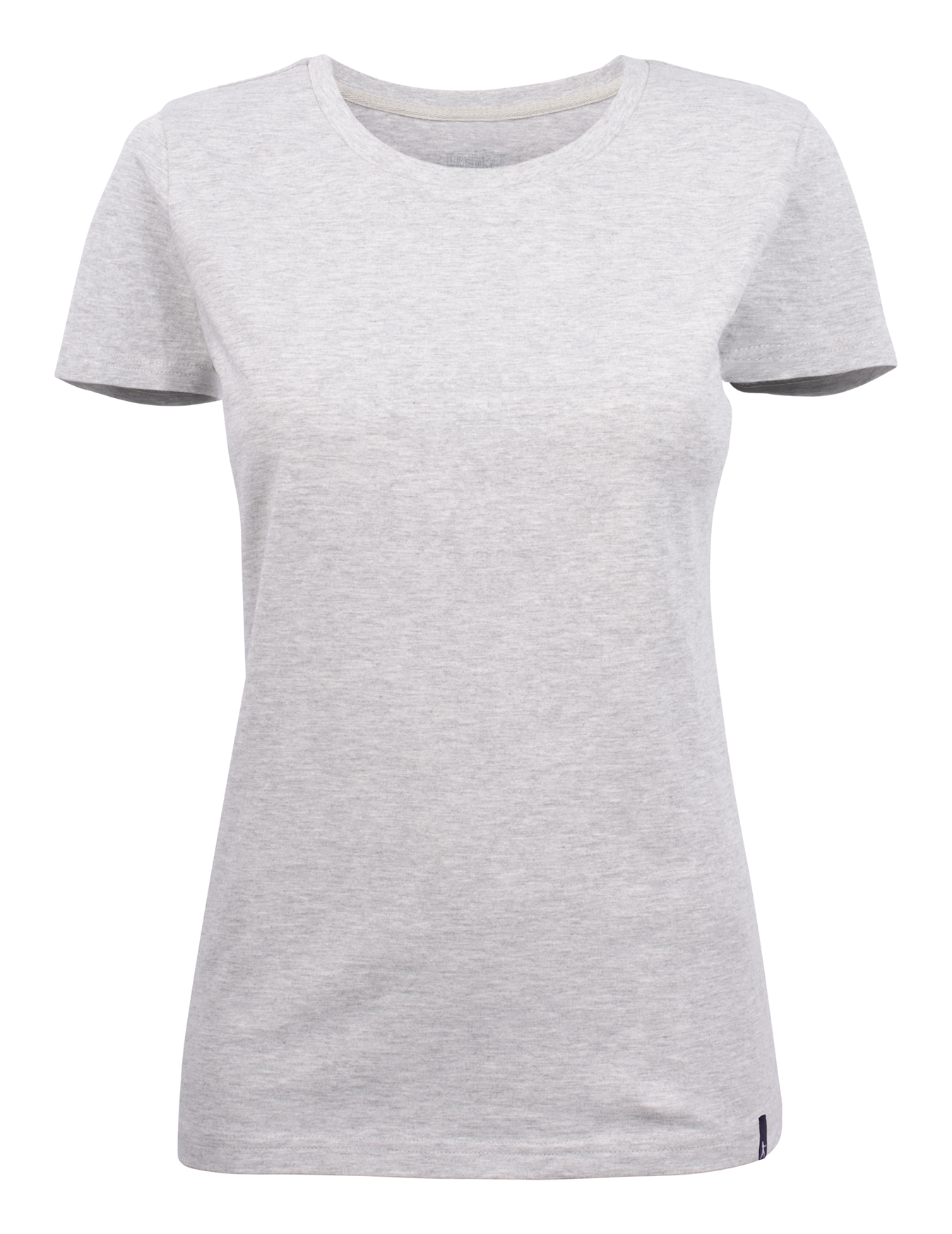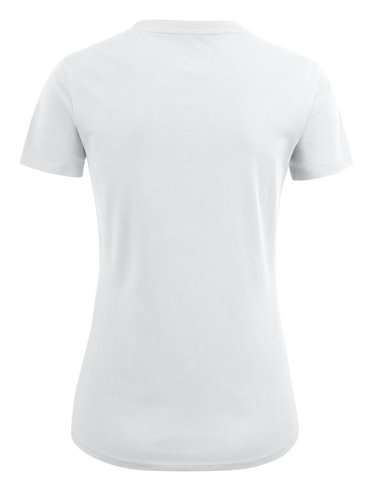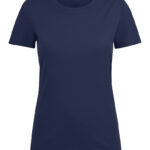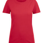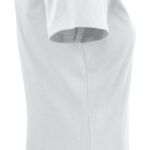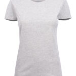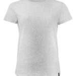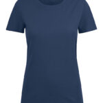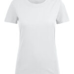 Koszulka z okrągłym dekoltem dla kobiet. 2-warstwowe wykończenie przy dekolcie (gwarantuje utrzymanie kształtu koszulki nawet po wielokrotnym praniu). Dodatkowe przeszycia na ramionach. Certyfikacja Oeko-tex.