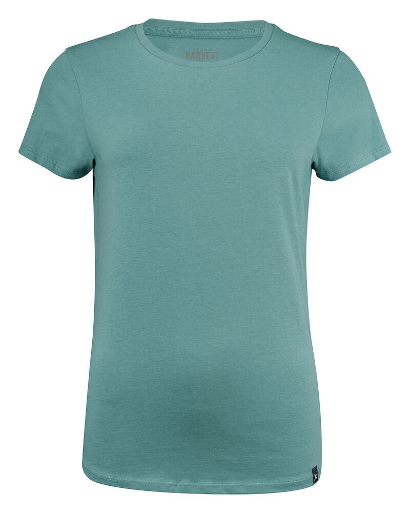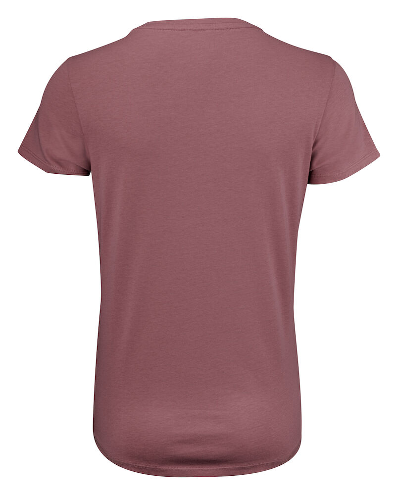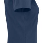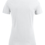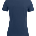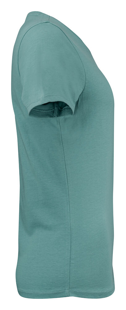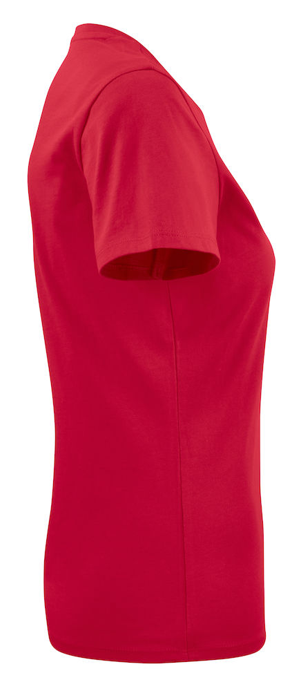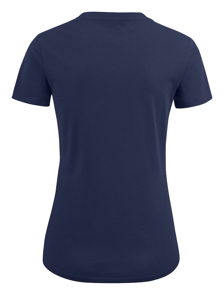 Koszulka z okrągłym dekoltem dla kobiet. 2-warstwowe wykończenie przy dekolcie (gwarantuje utrzymanie kształtu koszulki nawet po wielokrotnym praniu). Dodatkowe przeszycia na ramionach. Certyfikacja Oeko-tex.