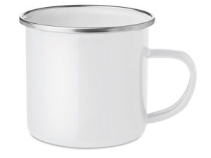 Sublimacyjny metalowy kubek w stylu vintage ze stali nierdzewnej o podwójnych ściankach z uchwytem w formie karabińczyka. Pojemność 300 ml.