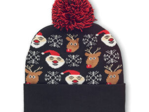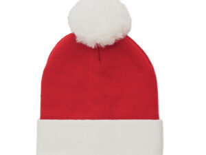 Świąteczna czapka z dzianiny z mankietem i pomponem z miękkiego, rozciągliwego akrylu.
