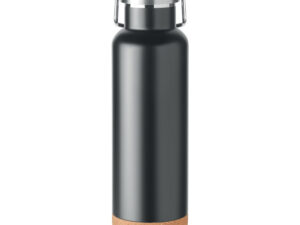 Termos izolowany próżniowo z recyklingowanej stali nierdzewnej z korkową podstawą. Nie przecieka. Pojemność: 500 ml. (90% stali nierdzewnej z recyklingu i 10% stali nierdzewnej).