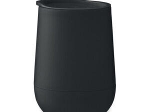 Kubek o podwójnych ściankach z PP z korkową podstawą i zamykaną pokrywką z ustnikiem z PS i ABS. Pojemność: 300 ml.