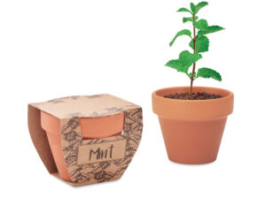 Mała gliniana doniczka z terakoty zawierająca nasiona rzeżuchy. Wyprodukowano w UE. Tabletka z glebą w zestawie.
