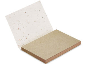 Zestaw karteczek w miękkiej okładce papierowej z nasionami, 25 samoprzylepnymi kartkami z trawy i 3 kolorowymi bloczkami memo. Podobnie jak w przypadku tradycyjnych żółtych karteczek memo, możesz zapisywać swoje notatki i przyklejać je kilkukrotnie w dowolnym miejscu. Po wykorzystaniu 25 szt. karteczek, możesz posadzić okładkę w glebie, dzięki czemu w Twoim ogrodzie zakwitną rośliny łąkowe. Ekologiczny niezbędnik biurowy. Wyprodukowane w EU.