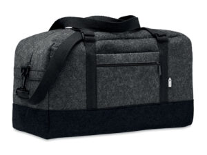 Plecak filcowy RPET z bawełnianym paskiem zapinanym na klamrę i kieszenią zapinaną na zamek z przodu. Posiada przegrodę na laptopa.