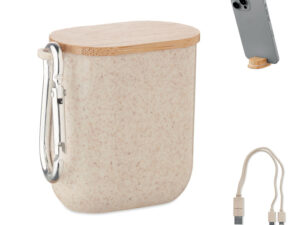 Zwijany kabel do ładowania i transmisji danych o mocy 100 W. Zawiera funkcję uchwytu na telefon. Kabel PVC z obudową ABS do zasilania i przesyłania danych (480 Mb/s). Połączenie Type-C do Type-C.