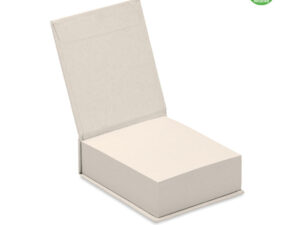 Zeszyt A5 z twardą okładką i 160 stronami w linie (80 kartek 80 g/m²) wykonany w 70% z kartonów po mleku i w 30% z papieru z recyklingu. Elastyczny pasek zamykający, zakładka z tasiemki.