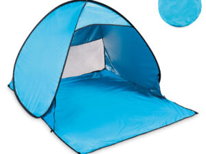 Lekka mata plażowa z poliestru 210T o wymiarach 200×210 cm. Zawiera 4 czarne haczyki i dopasowaną torbę ze sznurkiem do łatwego przenoszenia.