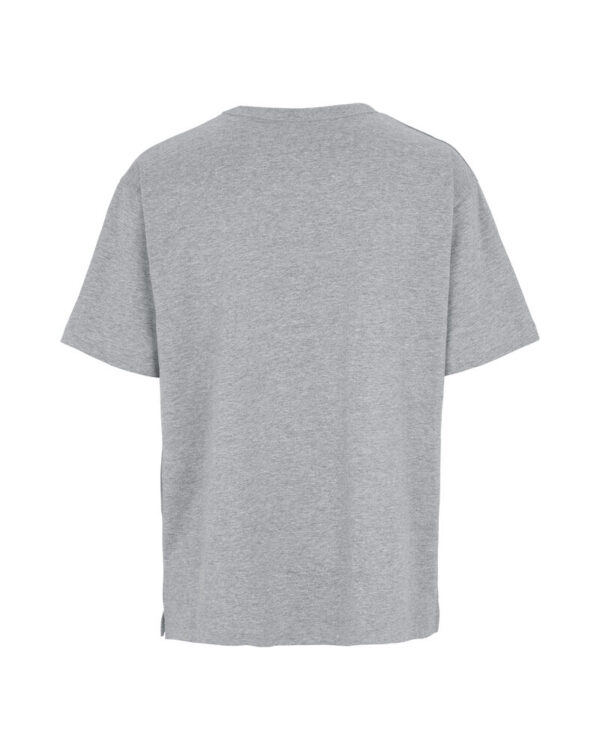 Oversize T-shirt o luźnym, uniwersalnym kroju. Wykonany z miękkiego i elastycznego materiału, posiada grubszy kołnierz oraz boczne rozcięcia dla zwiększonego komfortu. Koszulka ma również nadrukowaną etykietę na karku, co zapewnia gładki i estetyczny wygląd.