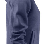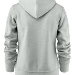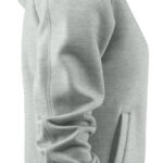 Bluza z kapturem wykonana z tkaniny „double face” od spodu wykończonej poliestrem. Metalowy zamek, kieszeń z zamkiem na piersi. Ściagacze na dole i przy mankietach. Dwie kieszenie boczne, sznurki przy kapturze bez względu na kolor bluzy w kolorze szarym.