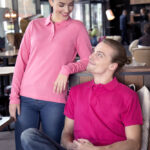 Dopasowana koszulka polo z długim rękawem w klasycznym splocie pique dostępna w wersji dla kobiet i mężczyzn. Przeszycia przy kołnierzu i mankietach, dwa guziki wzmocnione plisą.
