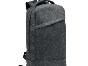 15-calowa torba na laptopa z filcu RPET z jedną główną przegrodą wewnętrzną i jedną zapinaną na zamek kieszenią przednią. Odpinany i regulowany pasek na ramię. Pasek na walizkę z tyłu.
