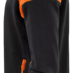 Dwukolorowa rozpinana bluza z kontrastowym zamkiem z przodu i w bocznych kieszeniach. Kontrastowa taśma przy karku oraz wykończenie ściągaczy 2×2 przy rękawach i na dole. Możliwość oderwania metki z logo oraz oddzielna tkana metka z rozmiarem ubrania. Specjalna kieszonka z wewnętrznej lewej strony na znacznik (np. technologia RFID*) do prania przemysłowego.