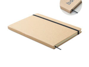 Notatnik A5 z twardą okładką wykonany w 70% z kartonu po mleku i w 30% z papieru z recyklingu. Białą okładka w kartonowej oprawie . 160 stron w linie (80 kartek). Gumka zamykająca, wstążkowa zakładka dopasowana do uwidocznionego koloru. Po grawerowaniu laserowym kolor jest widoczny.
