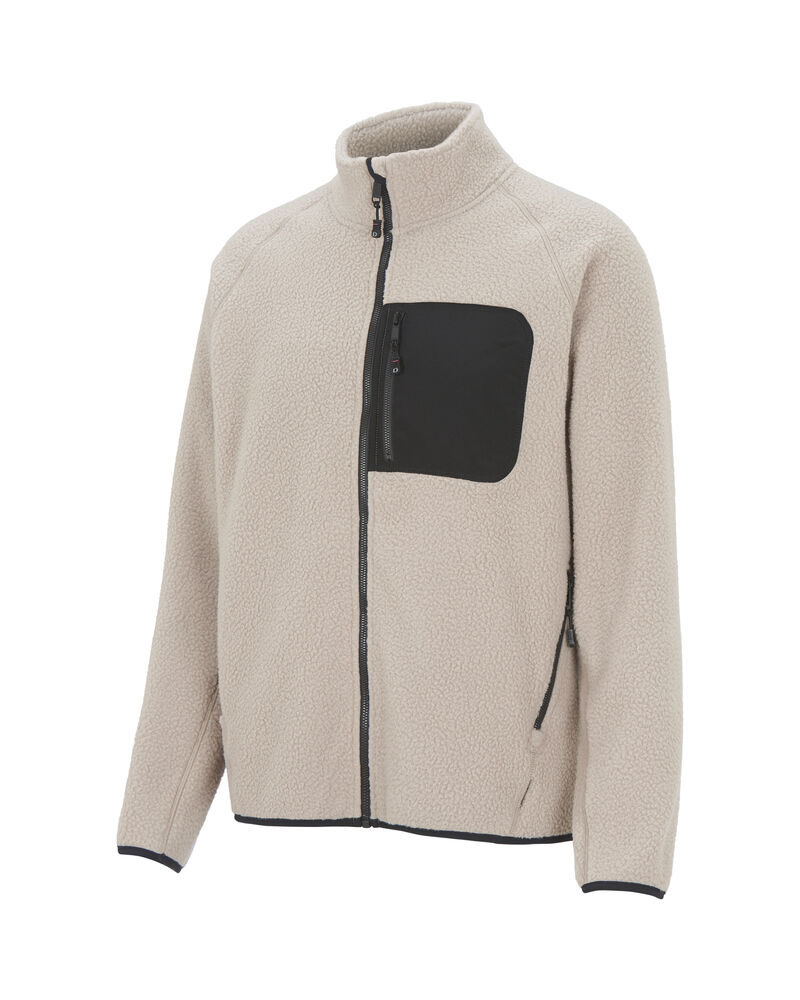 Sweter z polaru, materiał o większej gramaturze. Wykonany z certyfikowanego, przetworzonego poliestru. Dekoracyjna kieszeń na piersi z zamkiem błyskawicznym. Pełny zamek błyskawiczny biegnący aż do kołnierza. Kieszenie z przodu z widocznymi zamkami błyskawicznymi. Wszystkie zamki to YKK. Kołnierz podwójny, zszyty w kształt. Szycie na bokach i rękawach przesunięte do przodu dla lepszego dopasowania. Dekoracyjny ścieg typu flatlock. Elastyczny ściągacz na dole i mankietach. Wszystko w jednej tonacji kolorystycznej. Model damski jest delikatnie wyprofilowany.