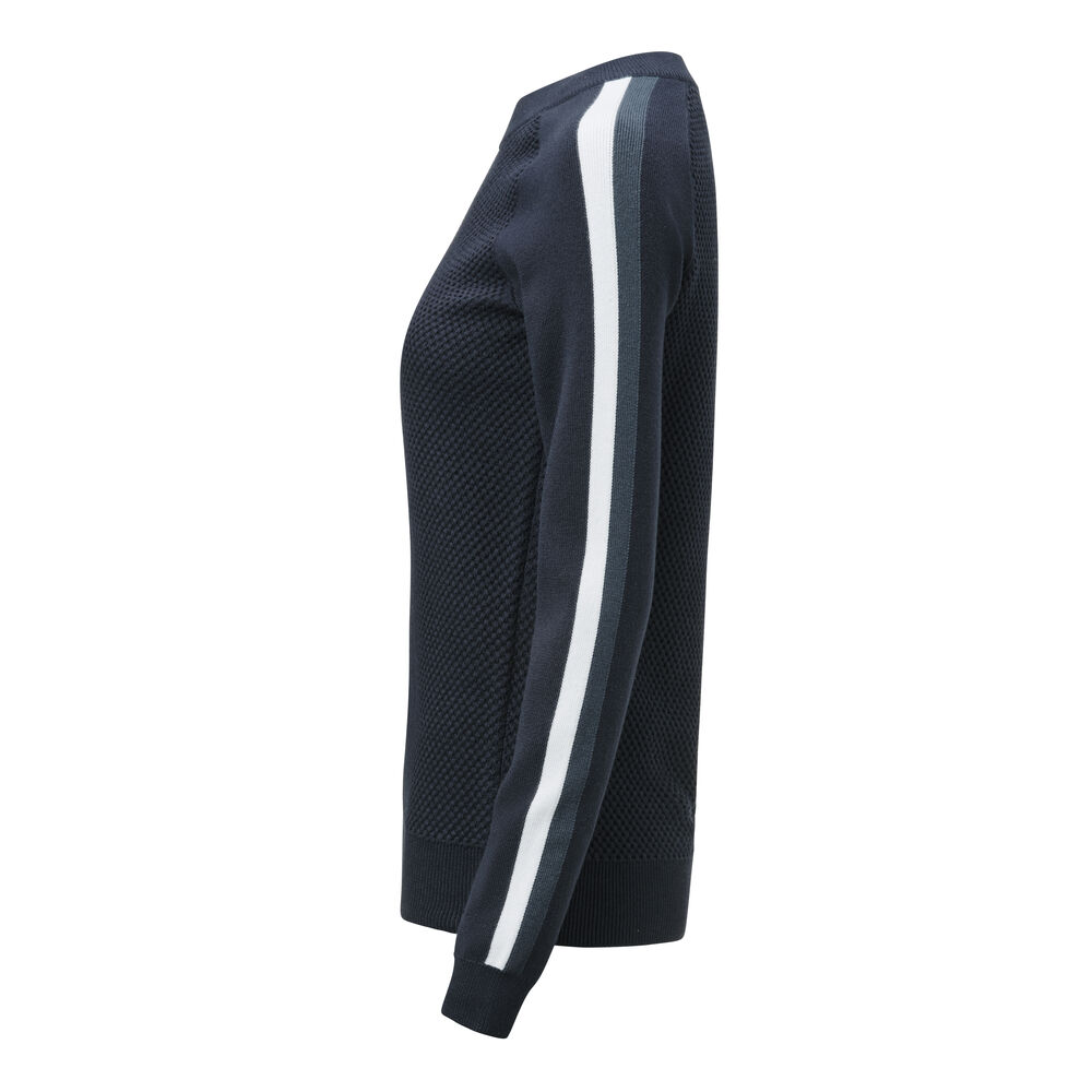 Przedstawiamy sweter Scarsdale – klasyczną wygodę w nowoczesnym wydaniu. Sweter wyróżnia się strukturalnym splotem z przodu i z tyłu, który nadaje mu teksturę i głębię, a raglanowe rękawy ozdobione dwoma kontrastowymi paskami dodają sportowego, współczesnego charakteru. Sweter wykonano w 80% z certyfikowanej organicznej bawełny i w 20% z certyfikowanego recyklingowanego poliestru.
