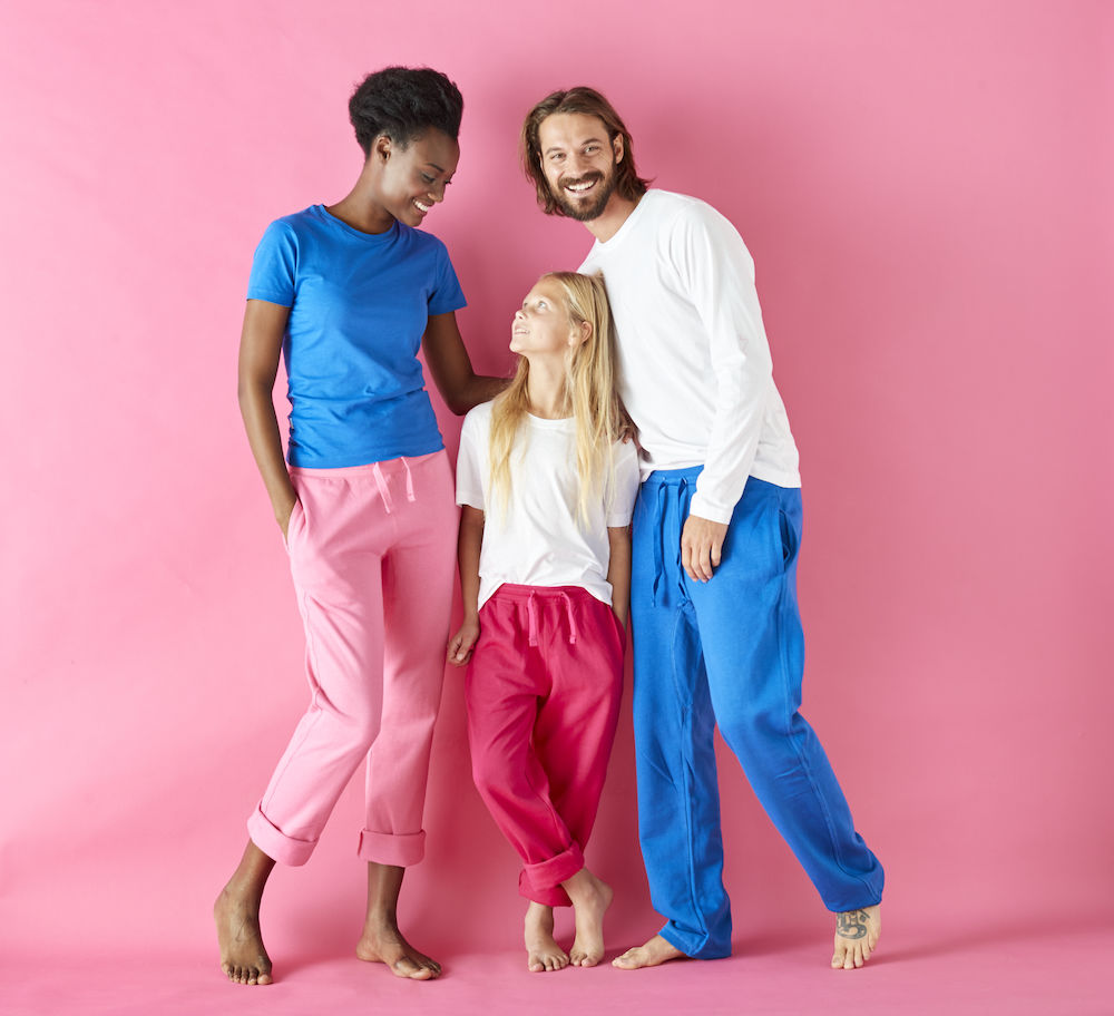 Spodnie dresowe dla mężczyzn, kobiet oraz dzieci. Szczotkowana podszewka, solidne sznurki do ściągania, kieszenie po bokach oraz dodatkowa kieszeń z tyłu w wersji męskiej.