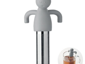 Zaparzacz do herbaty ze stali nierdzewnej w kształcie torebki z talerzykiem. Duże sitko do herbaty z silikonowym uchwytem.