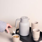 <p>Trine to termos dla tych, którzy cenią ponadczasowy design w połączeniu z praktyczną funkcją. Dzięki pojemności 1,5 litra doskonale sprawdzi się podczas spotkań w większym gronie i dłuższych chwil spędzonych razem. Trine posiada podwójną ściankę z izolacją próżniową oraz cienką miedzianą warstwę, które utrzymują napój gorący do 12 godzin lub zimny do 24 godzin. Sprytne zamknięcie pushlock umożliwia wygodne nalewanie bez rozlewania, a obrotowa pokrywka jest łatwa do zdjęcia. Termos nadaje się do mycia w zmywarce i dostępny jest w kilku kolorach. Wykonany z recyklingowanej stali nierdzewnej, z matową, proszkowo malowaną powierzchnią, zapewnia trwałość i wygodny uchwyt. Pojemność: 1,5 litra. Projekt: Studio Sagaform. Dostarczany w klasycznym pudełku Sagaform.</p> <p> </p> <p>Materiał: Recyklingowana stal nierdzewna z powłoką miedzianą, podwójne ścianki i powierzchnia malowana proszkowo / recyklingowany PP / silikon.</p> <p>Waga: 700 g</p> <p>Szerokość: 13 cm; Wysokość: 22 cm; Długość: 18 cm</p> <p>Pojemność: 150 cl</p> <p>Kolor: Beżowy, Pantone Warm gray 3C</p>