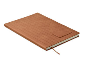 Notes A5 w twardej okładce PU pochodzącej w 40% z recyklingu i w 60% z PU. 160 stron w linie, papier makulaturowy 70 g/m² (80 arkuszy). Pasująca kolorystycznie tasiemka poliestrowa do oznaczania stron.