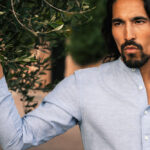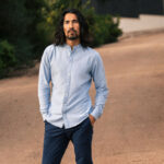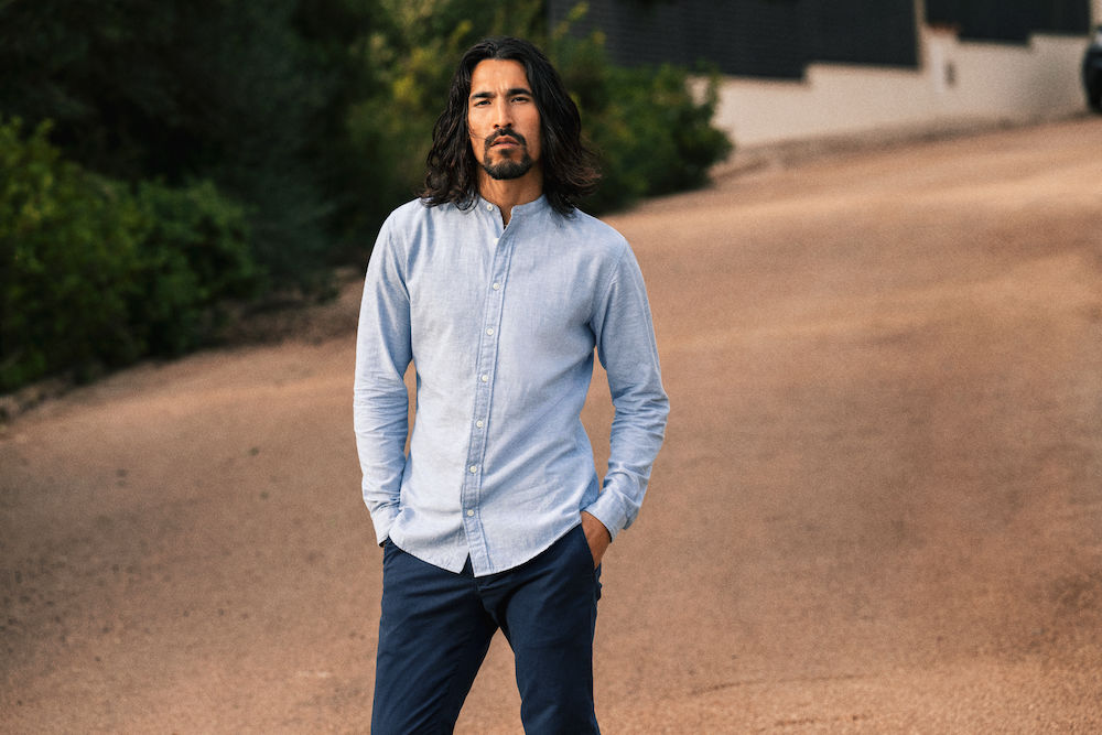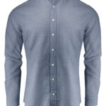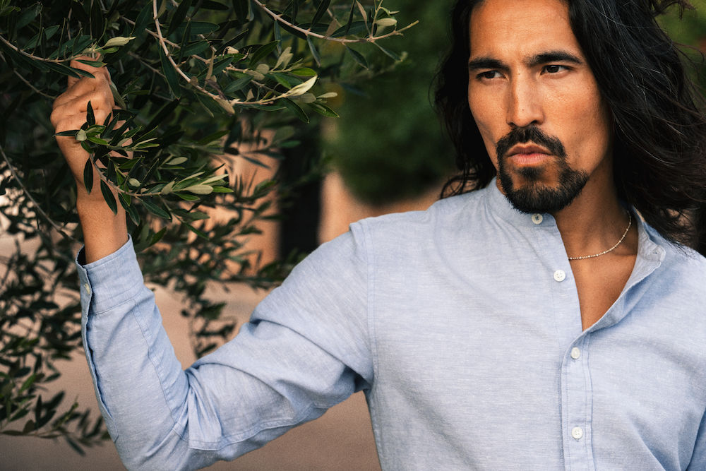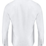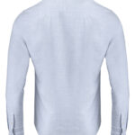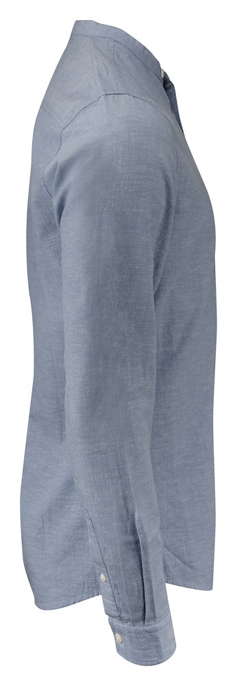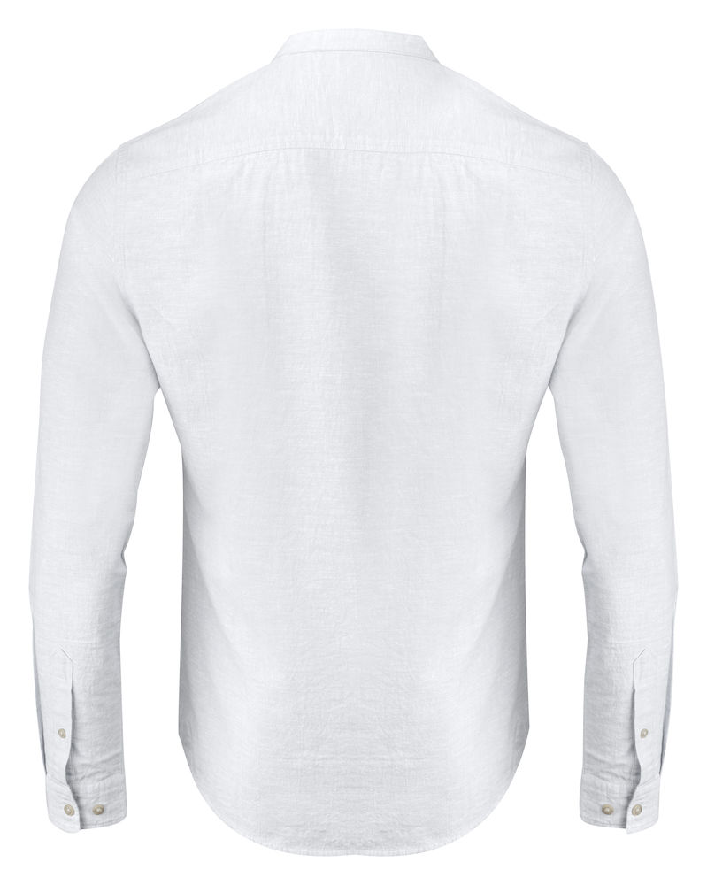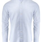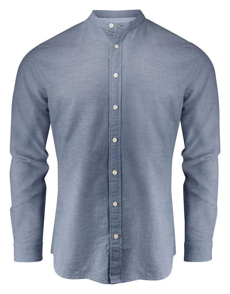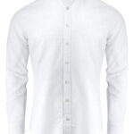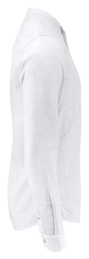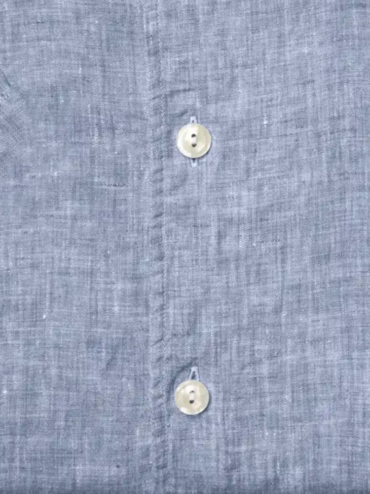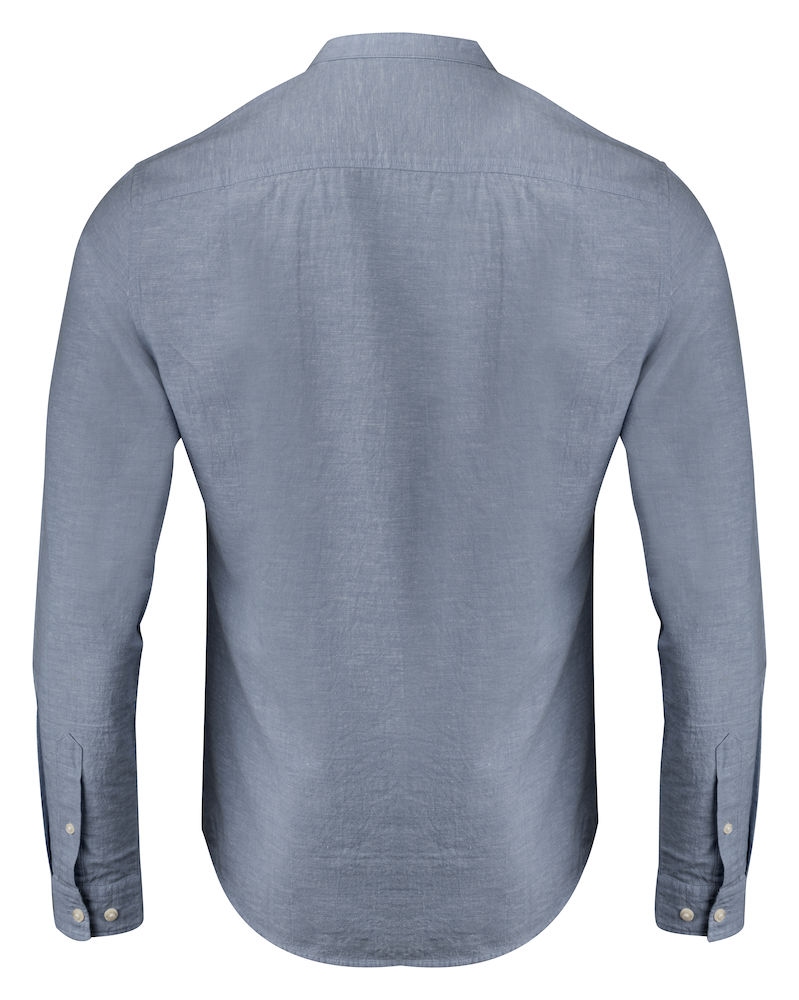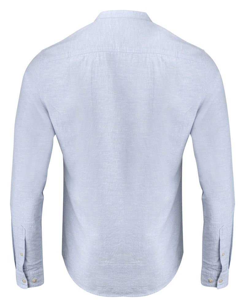 Koszula z mieszanki lnu z kołnierzykiem Mao i regulowanymi mankietami. Guziki w perłowym kolorze. Kontrastowy materiał po wewnętrznej stronie karczku i mankietów. Przędza barwiona.