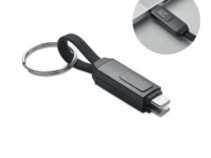 Krótka smycz do telefonu z kablem do ładowania i transmisji danych typu C do typu C o mocy 60 W z RPET z dodatkowym klipsem na klucze.