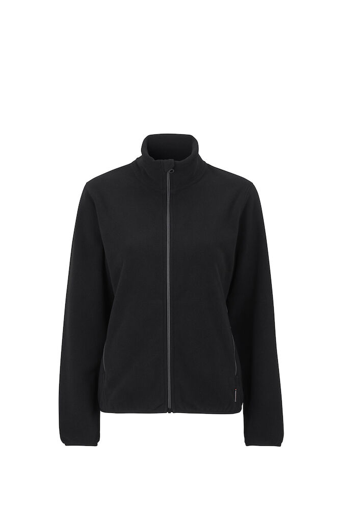 Kurtka polarowa. Wykonana z certyfikowanego, przetworzonego poliestru. Pełny zamek błyskawiczny biegnący aż do kołnierza oraz kieszenie z przodu, wszystkie zamki są widoczne i marki YKK. Kołnierz podwójny, zszyty w kształt. Szyje na bokach i rękawach przesunięte do przodu dla lepszego dopasowania. Dekoracyjny ścieg typu flatlock. Elastyczny ściągacz na dole i mankietach. Wszystko w tonacji kolorystycznej. Model damski jest delikatnie wyprofilowany.