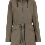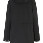 Bawełniana kurtka z kapturem z tyłu. Kurtka na podszewce, zamki YKK, sznurki ze stoperami w kapturze i w obwódce. Zamykane kieszenie z przodu z dekoracyjnym przeszyciem oraz wewnętrzna kieszeń.