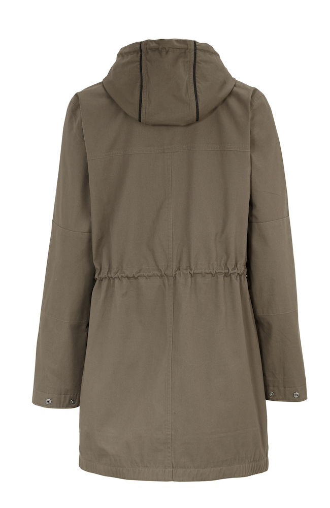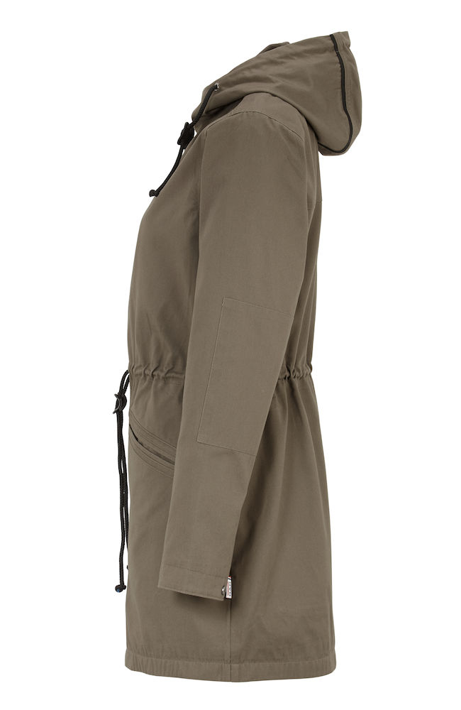 Damska wersja jest nieco dłuższa oraz nie ma możliwości odpięcia kaptura. Eleganckie wykończenie w pasie oraz w wewnętrznej części obwódki. Kurtka na podszewce, zamki YKK, sznurki ze stoperami w kapturze i w pasie. Zamykane kieszenie z przodu z dekoracyjnym przeszyciem oraz wewnętrzna kieszeń. Guziki w rękawach dla dokładniejszego dopasowania.