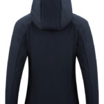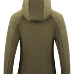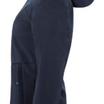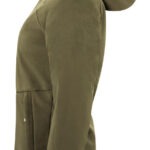Średniej długości kurtka zimowa. Materiał to softshell połączony z polarem wewnątrz. Dwustronny zamek z przodu oraz wodoodporny, standardowy na kieszeni na piersi. Odwrócone, nylonowe zamki po bokach. Pikowana podszewka z wewnętrzną kieszenią. Szczotkowana dzianina w kieszeniach zapewnia ciepłe schronienie dla rąk w mroźne, zimowe dni.