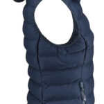 Bezrękawnik zimowy pikowany. Wodoodpory suwak na środku z przodu oraz w kieszeniach bocznych. Kieszenie boczne wykończone razem ze szwem bezrękawnika od wewnątrz, mogą również pełnić funkcję kieszeni wewnętrznych. Kaptur regulowany za pomocą elastycznych sznurków po bokach, wykończony elastyczną taśmą przy szwie.
