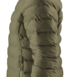Wyściełana kurtka zimowa z materiału pozyskanego z recyklingu. Zapinana na zaklejony (ukryty), wodoodporny zamek z przodu i w bocznych kieszeniach. Kieszenie boczne są zaszyte od środka wraz ze szwami wewnątrz, dlatego można użyć ich z obu stron. Możliwość regulacji na rękawach. Kaptur regulowany elastycznymi sznur – kami, każdy szew jest klejony taśmą, aby kurtka nie przemokła. Kurtka jest wodoodporna i wiatroodporna (wysokie parametry MVP i WP).